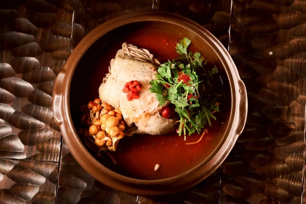 唐辛子の刺激が楽しめる「RED – 辛味薬膳参鶏湯」6,380円(税込)、