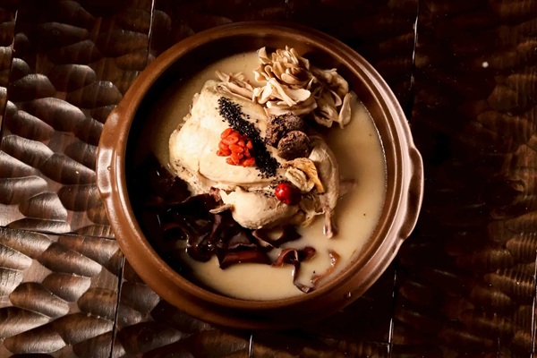 黒胡麻とにんにくにトリュフの香りを重ねた贅沢な一杯「TRUFFLE BLACK – 黒トリュフ参鶏湯」7,480円(税込)を提供している。