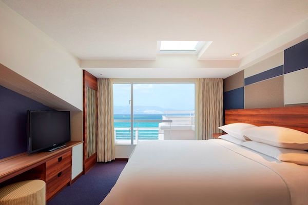 シェラトン沖縄サンマリーナリゾートは、環境省より最高ランクの「AA」に認定された美しい白砂ビーチに面した、全客室バルコニー付のリゾートホテルだ。全246室の客室のほか、多彩な料飲施設、屋内プール、ウォータースライダー付きガーデンプール、大浴場、サウナ、ジム、スパなどを備える。