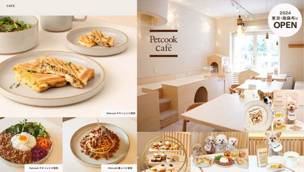 東京・南麻布に完全予約制の「Petcook Café」をオープンし、愛犬と飼い主が同じ食卓を囲む場として、「Petcook」を使った人用メニューも提供している。飼い主自身が食べておいしいと言えるものを、愛犬にも同じ食卓で出せる。食品としての安全基準において人の食事と同等であるからこそ、この体験を実店舗で積み重ねてきた。