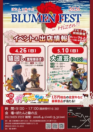 唐津市は、JR唐津駅から車で約20分の場所にある佐賀県唐津市のぼたんと緑の丘で、4月1日(水)〜5月31日(日)の期間、「ぼたんと緑の丘 BLUMEN FEST 2026」を開催している。
