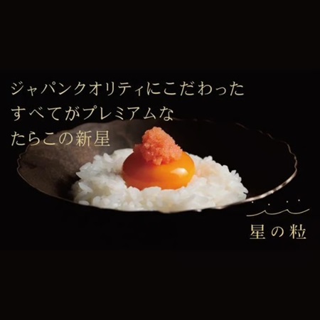 「星の粒」は、北海道産スケトウダラの卵巣のうち、最高成熟度「真子中の真子」のみを厳選して使用している。薄皮で粒感があり濃厚な旨みが特徴だ。