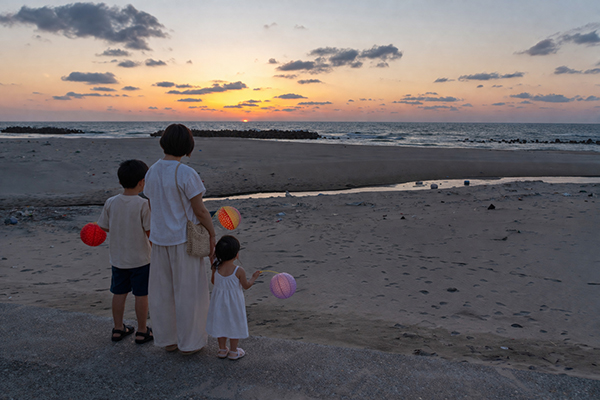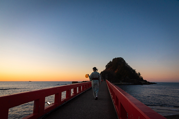 由良温泉では、4月28日(火)~5月に開催予定。由良温泉は、日本海に面し、「日本の渚100選」にも選ばれた由良海岸に広がる温泉地。朱塗りの橋で結ばれた白山島の景観が特徴だ。日没から夜にかけてライトアップされる朱塗りの橋と、海に浮かぶ白山島のシルエットが幻想的な景色が楽しめる。由良海岸では手持ち花火も楽しめ、思い思いの灯りの中で夏の夜を過ごせる。