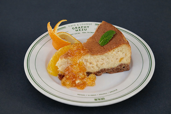 チーズのコクに甘夏の果実のさっぱりとした味をブレンド、そこにアペロールを加えた甘夏チーズケーキは700円(税込)だ。
