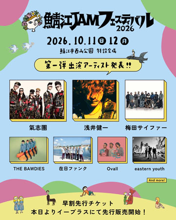 この反響を受け、今年は「鯖江 JAM フェスティバル 2026」として新たに開催。ジャンルを越えて響き合う多彩なステージと街や地域の文化・感性が交差する空間づくりを通じて、西山公園という自然に開かれたロケーションで“鯖江スタイル”の音楽フェスをさらに発展させる。
