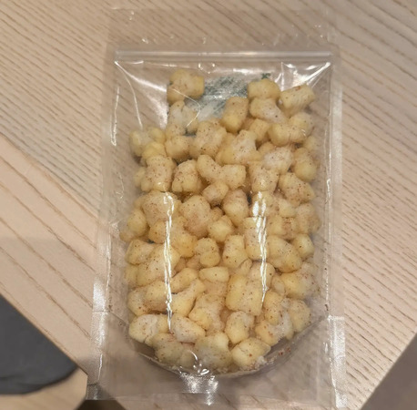 今回の企画は、昨今の世界情勢に伴う包装資材の供給不足により、オリジナルのパッケージ制作が困難になったことを受けた緊急措置。デザインという「化粧」を一切脱ぎ捨て、メーカーから届いた試作品そのままの「透明無地袋」で、味の真価を問う。