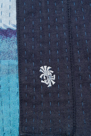 そのほか、「裂き織生地」にも注目したい。黒澤明監督が生前着ていた洋服の中から、擦れたり穴が開き着れなくなった物を一回細かく裂き、さらにまた生地に仕立てた「裂き織生地」をジーンズの革パッチの代わりに縫い付けている。“黒澤を着る”という「黒澤衣裳」のキャッチコピーそのままの商品だ。