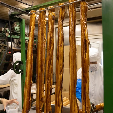 1つ目は、身長と同じ長さで作ることで“成長の可視化”ができること。注文時に子どもの身長を1cm単位で指定し、その長さに合わせた一本の麩菓子を製作。最長85cmまで対応できる。「1年でここまで大きくなった」という実感を視覚的に体験できる。