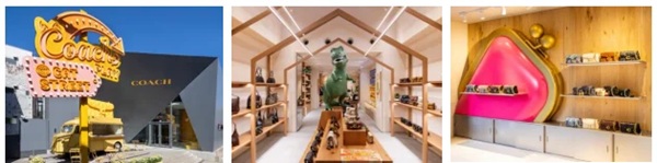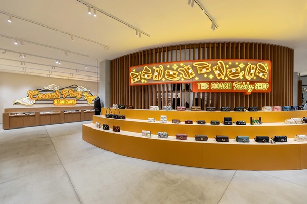 日本のコンセプトストア1号店、東京・原宿の「コーチ プレイ@キャットストリート」では、五感で楽しめる空間演出やアート要素を通じて、遊び心あふれるブランド世界を体験できる。続いてオープンした「コーチ プレイ 大阪」は、竹や木を用いた和の意匠と、街のネオンが交差するエネルギッシュな空間の中で、マスコットキャラクターの「レキシー」の大型オブジェが人々を迎える。