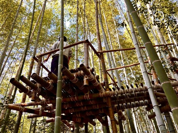 竹匠塾は、竹林デザインや、竹を使った空間・活動の可能性を、模型や資料を通して紹介。放置竹林を活かし、明るく、人が集う居場所を提案する。