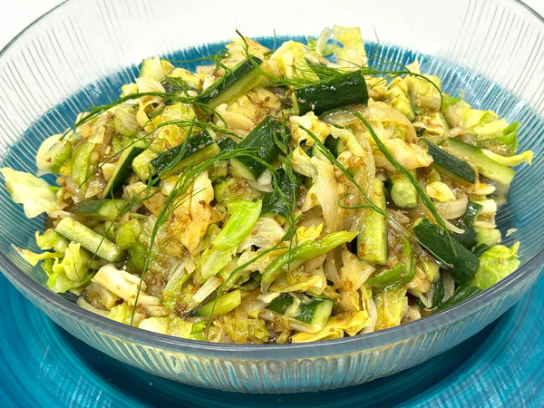 瑞々しい春キャベツや新玉ねぎ、胡瓜を、ローストオニオンやニンニクのパンチが効いた特製ダレで和えている。シャキシャキとした食感と香ばしさが後を引く、やみつきになるような美味しさだ。
