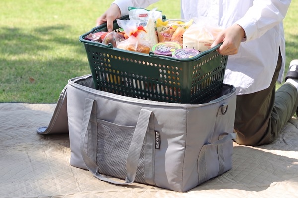 猛暑のレジャーも買い物もこれひとつ!カゴごとすっぽり入る本格保冷のクーラーバッグ「マイバスケットクーラー」をチェックしてみては。