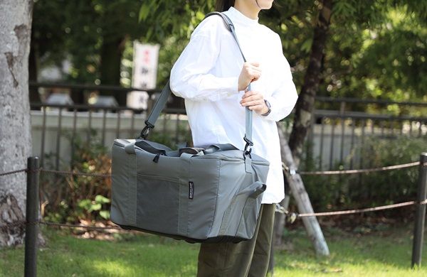 さらに、持ち運びに困らない3パターンのグリップも特徴。トートバッグのように持ち運べるハンドル、重量のある買い物かごでも持ち上げやすい安定感あるサイドハンドル、両手がふさがっていても持ち運べる肩掛けベルトを用意した。
