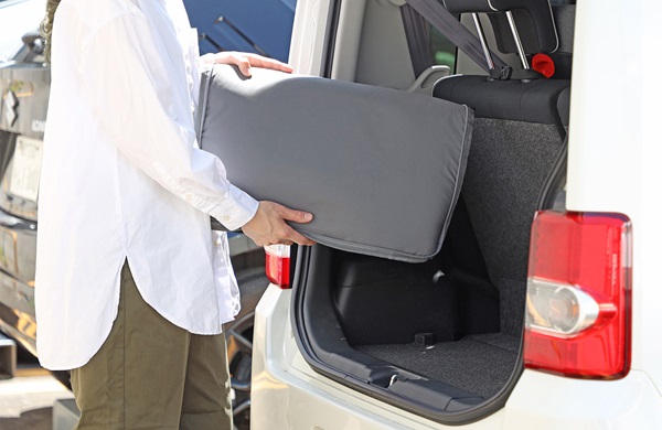 使わない時は薄く折りたたむことが可能。キッチン収納の隙間や車のシート下など、すぐに取り出せる所にしまっておける。