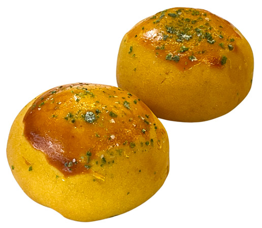 たこ焼の丸いフォルムと焼き色を再現するため、キャラメル風味のスイートポテトを開発した。スイートポテト餡をキャラメルポテト生地で包み、天面にはソースに見立てた卵黄を塗り、青のりを表現するために緑色に着色した氷餅を細かく削り、上から振りかけている。細部にまでこだわった再現度と、口に入れた瞬間の意外性が、思わず笑顔と会話を生み出してくれる。
