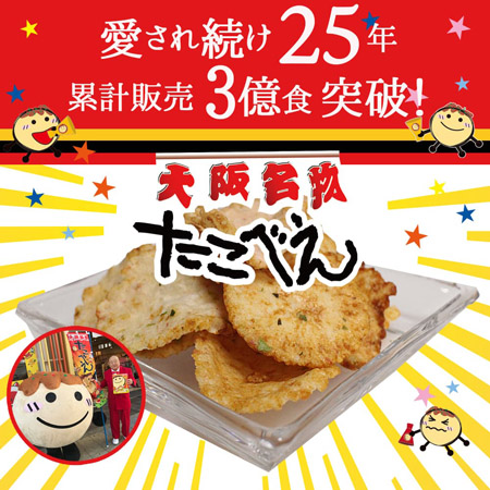 「たこべえ」は、29年前の1997年、実家の倒産危機を救うために山本宗禅氏が開発したたこ焼きせんべい。これぞ大阪の味と大人気で、今もなお売れて続けており、販売枚数3億枚を超えている。新発売の「見ためたこ焼 ほんまは…」も、「たこべえ」のように、大阪名物として長く愛される商品になることを目指している。