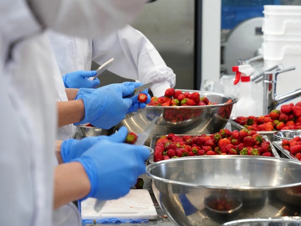 同商品は4月中旬、長野県信濃町にあるオフィス併設の商品開発ラボにて製造が行われた。製造開始前には、開発担当者から「つくる時の気持ちは味に出る。このいちごのように、かわいい心で加工をしましょう」と声掛けがあったという。