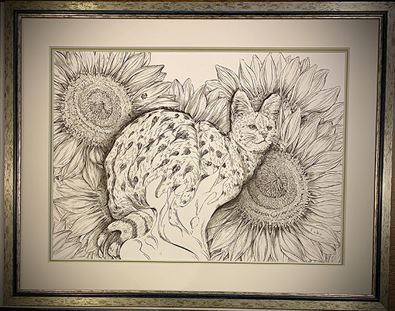 種の違いを超えた存在としての共通性に着目し、その内側にある気配やエネルギーを可視化することを試みている。鍛金作品では、実物大スケールの動物をモチーフに、銅板の絞り技法を基軸に、溶接や透かし彫りを組み合わせた制作を行っている。
