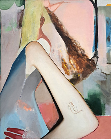 人の像が不可避的に生む物語性と、平面上の造形性との緊張関係に着目し、絵画が何かを説明・表象するための道具に回収されない状態を目指して制作している。