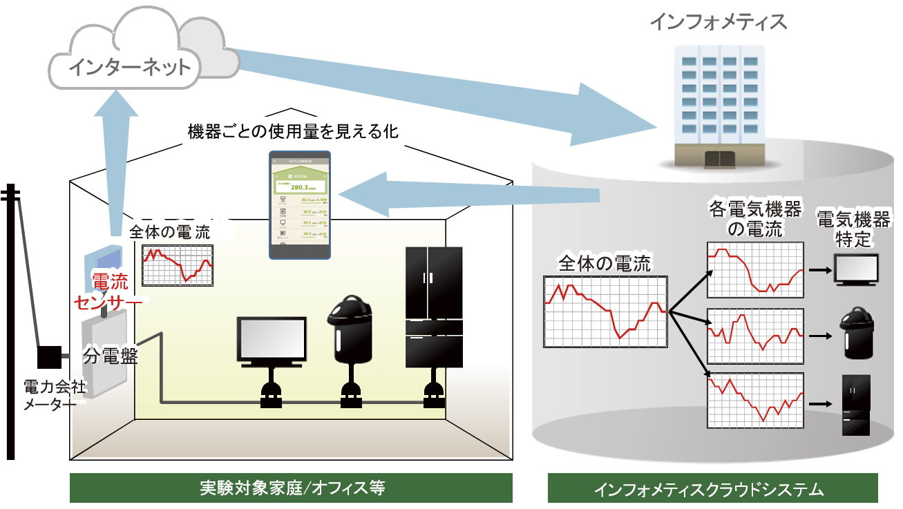 インフォメティス株式会社(東京都港区 代表取締役社長 只野太郎)と東京電力株式会社(東京都千代田区 代表執行役社長 廣瀬直己)は、平成27年3月より、インフォメティス株式会社の「機器分離技術」を活用したサービスの実証を共同で実施することといたしました。本実証では、インフォメティス株式会社はAI(人工知能)を用いた機器分離(ディスアグリゲーション)技術を提供いたします。本実証により簡易にローコストで得られる「機器ごとの使用状況データ」を活用して、顧客満足度をさらに高めるための新たなサービスの可能性を検討いたします。