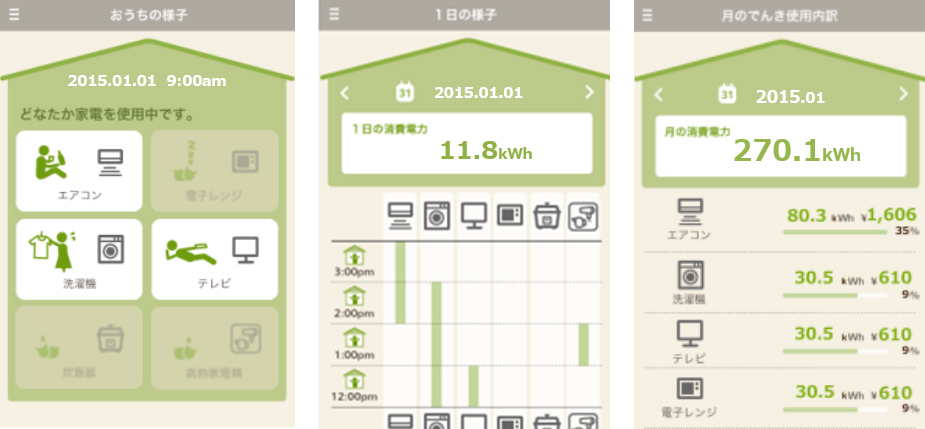 データ計測は1秒毎に行っているため、電子レンジの短時間使用など、分・時単位の計測では捕捉の難しかった機器の使用状況を把握することができます。