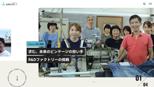 また、備後企業の魅力を発信することで、UIJターン者と地元企業のマッチングを目指します。オープン時は有名ブランドの縫製を手がける株式会社R&Dファクトリーを特集しました。→https://ancher.jp/features/898/