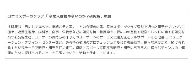コナミスポーツクラブ「 なぜ人は続かないのか?研究所」