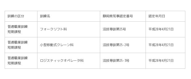 このたび静岡県知事から職業能力開発促進法に基づく認定職業訓練の認可が取得でき、職業訓練機関としての社会貢献使命として、それらの物流事業者様と求職者の方々との橋渡し、ならびに事業者様の従業員の更なる技能習熟とその多能工化を図ることでの、事業者さまの事業拡大ならびに地元産業の活性化、雇用状況の好転化をお手伝いする所存です。