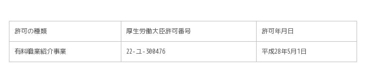また、5月1日には厚生労働大臣認可である職業紹介事業許可も拝受し、それらの分野への有能技能人材を供給する雇用促進にも一層の貢献をさせていただきたい所存です。
