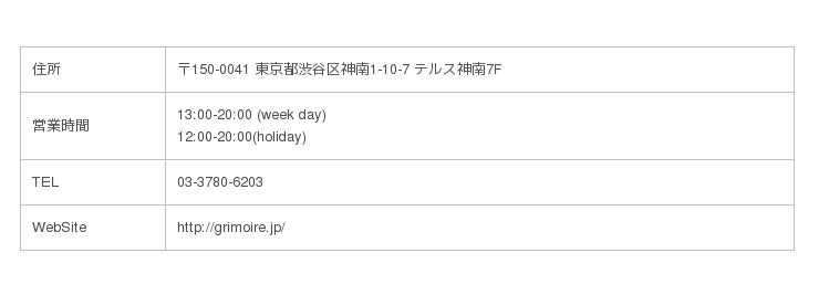 メールアドレス:info@grimoire.co.jp