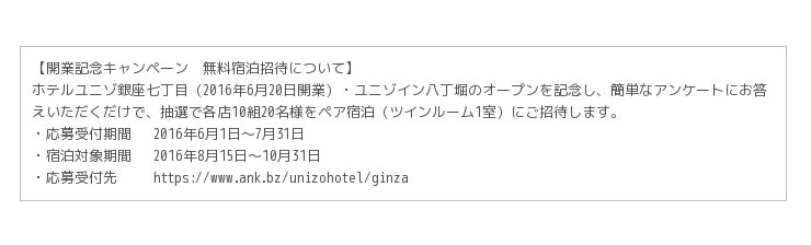 応募受付先 https://www.ank.bz/unizohotel/ginza