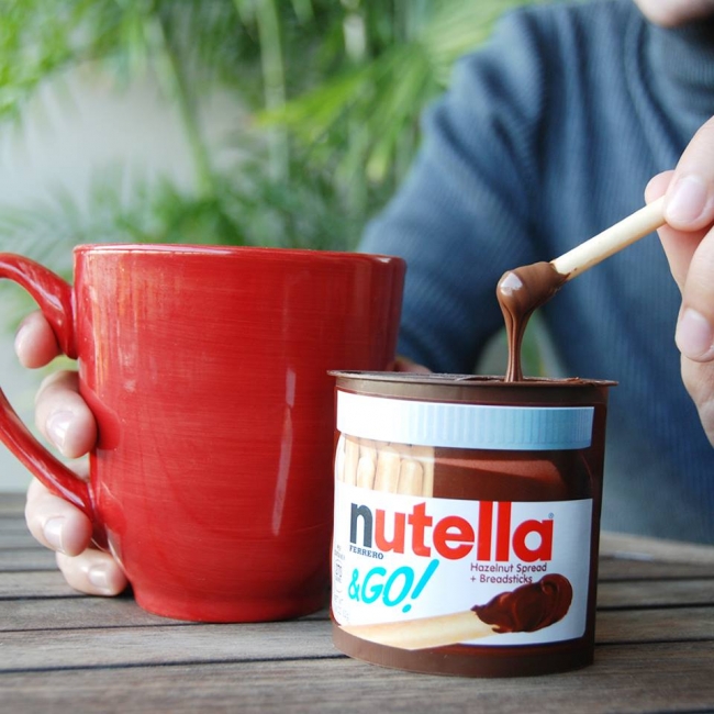 「ヌテラ アンド ゴー!」は、ヘーゼルナッツペーストをベースにしたココア入りスプレッド「ヌテラ」と、ブレッドスティックが一体になったスナックです。ブレッドスティックのサクサク食感とヌテラの甘くて香ばしい風味のハーモニーを手軽に楽しめます。朝食離れが増加傾向にある10代~20代の若年層※2を中心に、朝忙しく朝食が取れない全ての人に、美味しく、楽しく、手軽な朝食を提供することをミッションとしています。クイックブレックファスト以外でも、デスクワーク・勉強中のおやつに、ピクニックのお供になど、「on the go!」にぴったりです。