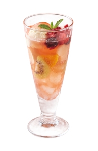 キウイ、バナナ、マンゴー、モモ、アロエといった5種のフルーツに、ソーダと特製小梅ソースが絶妙にマッチし、爽やかな味わいです。