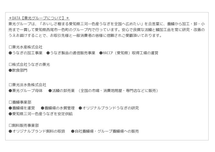 兼光は、養鰻から加工、販売までを一貫して自社で行っている国産ブランド三河一色うなぎの老舗として、味にこだわるうなぎファンの皆様から長年ご愛顧をいただいております。兼光では、蒲焼きや白焼きはじめとする最高級のうなぎ料理を提供する人気店の味を、ご家庭でもご賞味いただけるようにと、平成22年より『うなぎの兼光ネットショップ』を開設いたしました。そして開設から7周年を迎えた本年、お客様により便利にお買い物を楽しんでいただくために7月3日(月)ネットショップサイトを全面リニューアル致します。新しいサイトは、スマートフォン表示対応で見やすく・選びやすく・より美味しさの伝わるサイトになる予定です。美容と健康にもよい”三河一色産うなぎのパワー”を多くの皆さまにご賞味いただけるようインスタグラムやFacebookとも連携して情報を発信してまいります。