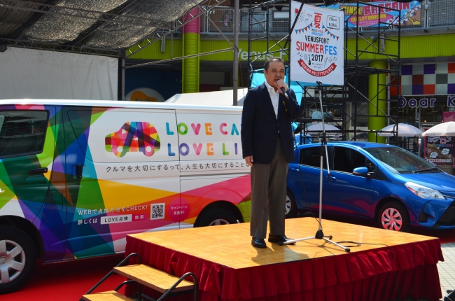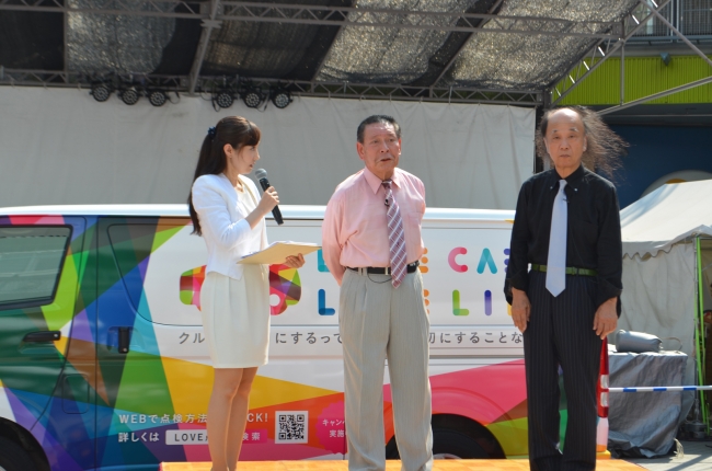 自動車点検整備推進協議会は、自動車点検整備推進運動の一環として2017年8月30日(水)にお台場パレットタウン パレットプラザ内(住所:東京都江東区青海1丁目3番15号)にて、芸人の「海原はるか・かなた」による「LOVEキャラバン出発式」を開催いたしました。イベントでは、国土交通省自動車局整備課長の平井隆志氏よりご挨拶があり、 「海原はるか・かなた」による漫才も披露され、日常点検や定期点検の必要性をアピールいたしました。