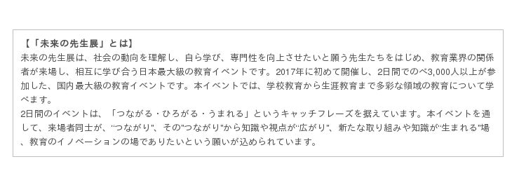 【イベント概要】 ( HP:http://www.mirai-sensei.org/ )