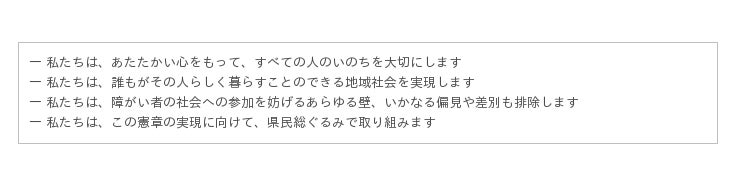 このような事件が二度と繰り返されないよう、私たちはこの悲しみを力に、断固とした決意をもって、ともに生きる社会の実現をめざし、ここに「ともに生きる社会かながわ憲章」を定めます。