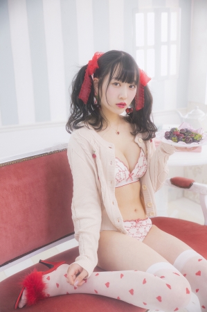 今回ランジェリー撮影に初挑戦した越智ゆらのさん。ドーリーフェイスと美BODYで愛らしいヴィジュアルが完成した。春夏の新作コレクションは、流行のパステルカラーを中心にシンプルなデザインからガーリーテイストまで幅広くラインナップ。
