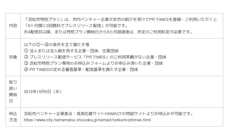 特別プラン募集ページURL:https://www.city.hamamatsu.shizuoka.jp/hamact/prtimes