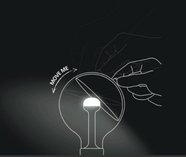 180度の可動域を持つ傘を動かすだけで、光の向きを好きに調整!