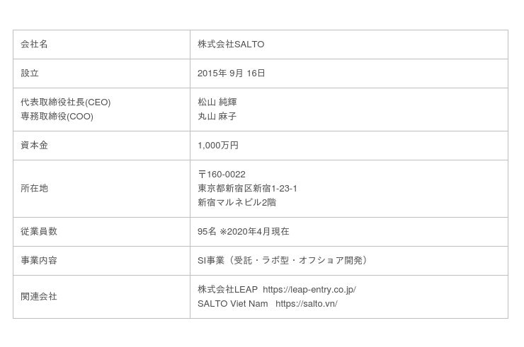 IT技術者の支援やシステム開発を手掛ける株式会社SALTO(代表取締役社長:松山純輝)では【IT・教育・就業支援】が一体となったオンライン完結完全就業支援型プログラミングスクールLESALTO(https://lesalto.jp/)をリリースいたしました。【完全就業支援型】で、頑張るあなたを応援します。