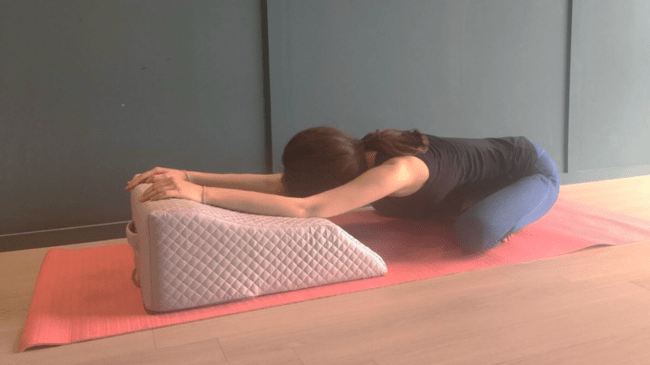 座ったままできる背中の筋肉が伸びるヨガのポーズ。スッキリして身体が軽くなります。