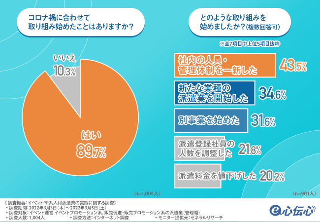 それだけコロナ禍は、イベントPR系派遣業界に深刻な影響を与えていることがわかる結果と言えそうです。