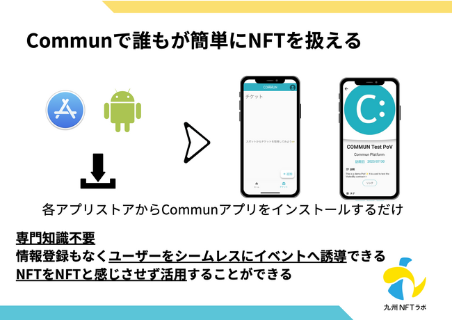 ■九州NFTラボの技術支援のもと、手軽で簡単にNFTを取得できるCOMMUNアプリを活用