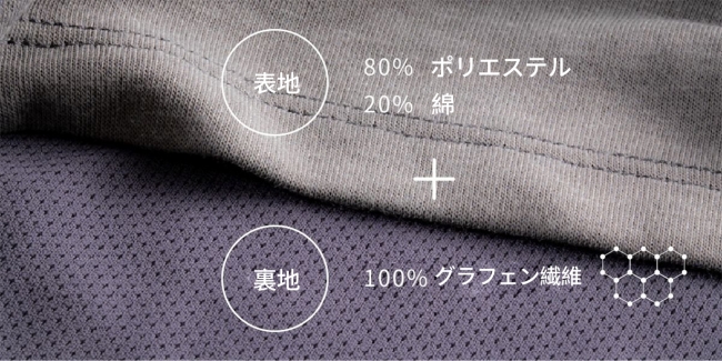 優れた功能をたくさん持っていることから「夢の素材」と呼ばれているグラフェンを裏地に使うことで、涼感・散熱・通気性・吸水性・速乾性・耐磨耗・UVカットなどの効果を持つポロシャツに仕上がりました。
