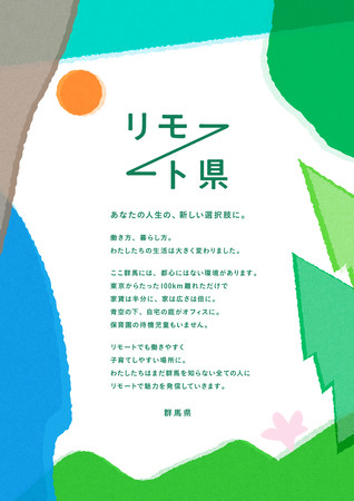 そして、新型コロナウイルス感染症の影響による過密地域のリスク回避・リモートワークへの移行などの世の中の変化に伴い、子育て世代の地方移住をバックアップできる体制『リモート県』をコンセプトに、群馬での「子育て」を積極的に『リモート発信』してまいります。