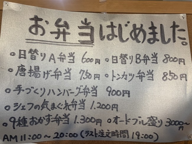 この度、新型コロナウイルスによる外出自粛や事態の長期化に伴い、お弁当メニューの取り扱いを始めました。