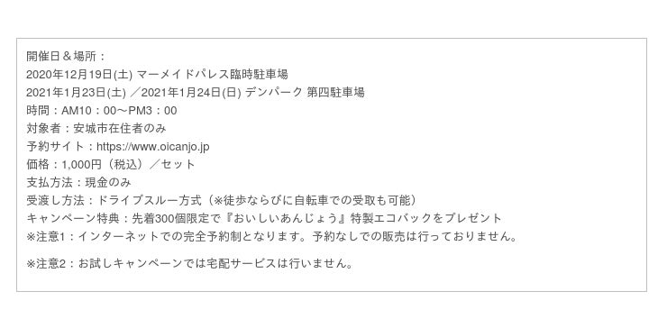 おいしいあんじょう制作開始に伴い、お試しキャンペーンを下記日程で行います。