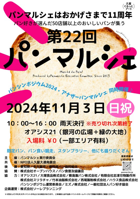 食の都・名古屋を代表するパンの祭典「パンマルシェ22」が、2024年11月3日(日・祝)に、栄のオアシス21で開催決定!