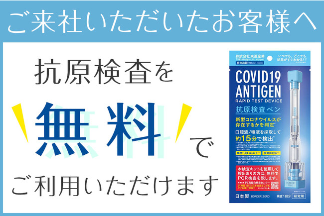 ご希望のお客様には、面談前に抗原検査キットを無料でお配りしておりますので、ご希望のお客様は面談前にカウンセラーにお伝えください。